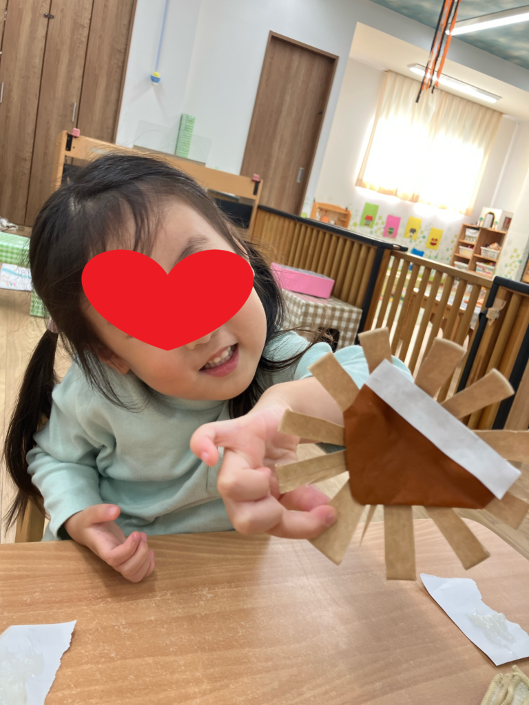 秋が深まってきた今日この頃。子どもたちと一緒に行った秋の製作を紹介したいと思います。