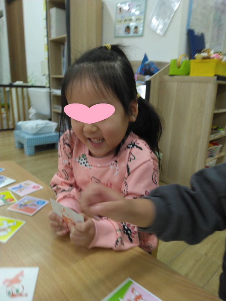 絵札がとれるととっても嬉しそうなお顔に♡
