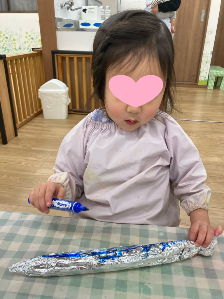 アルミホイルで包んでペンで色塗りをしたら美味しそうなお魚の完成!!