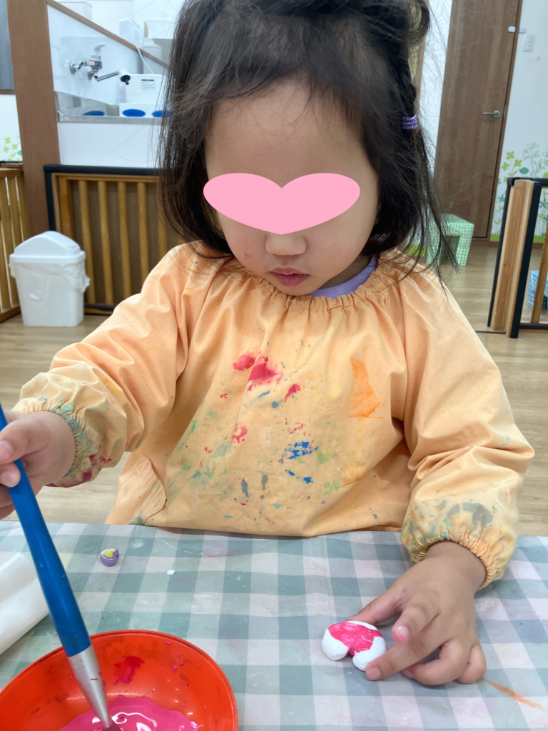 絵の具で色付け!「アクセサリー 作ってるんだよ」と教えてくれました✨