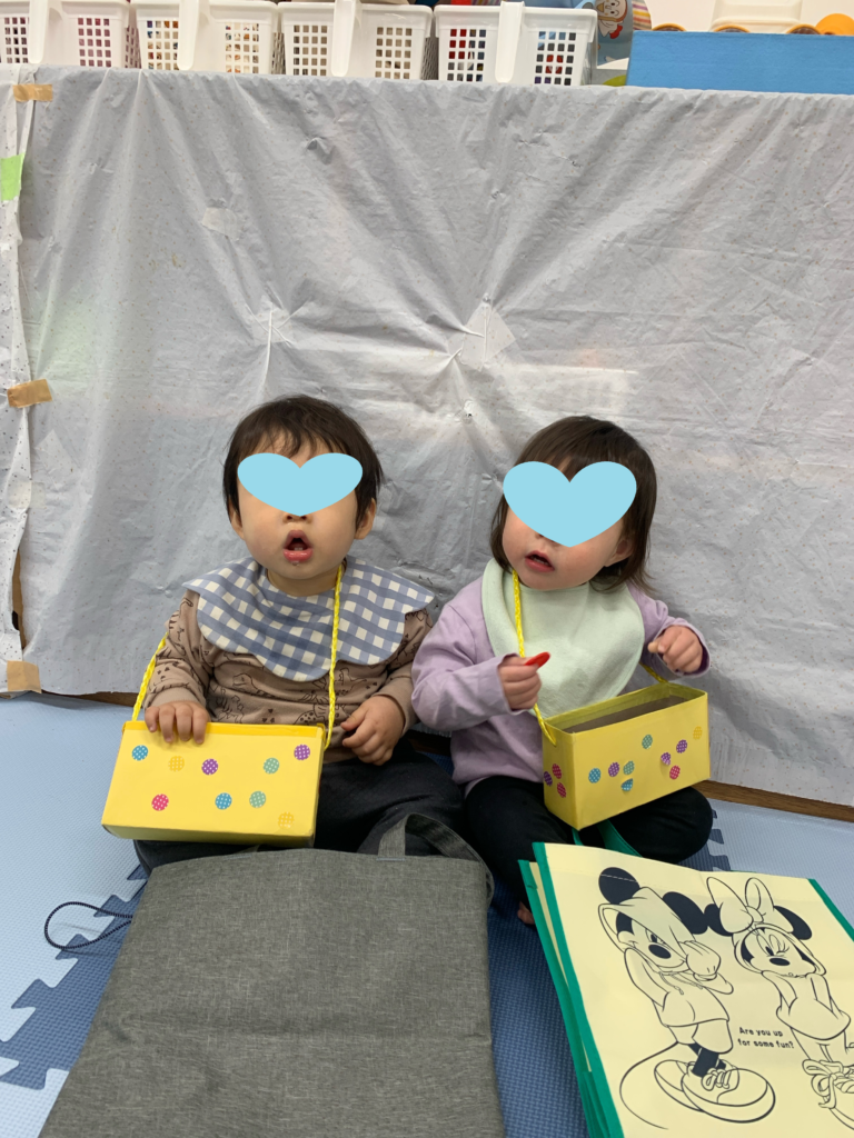 ひかりぐみさんもにじぐみさんも手作りのお財布を首から下げて準備万端です♬