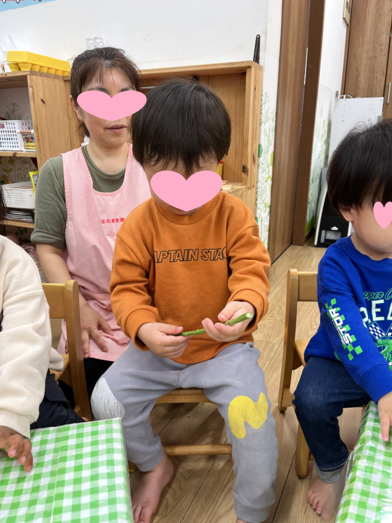 春野菜についてお話を聞き、実際にお野菜に触れてみることに・・・